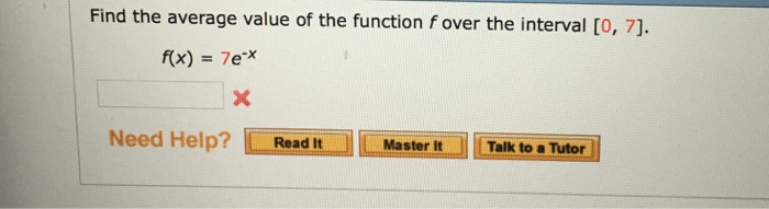 Solved: Find The Average Value Of The Function 7/x Over Th ... from d2vlcm61l7u1fs.cloudfront.net This calculates the average value of a given function over a specified interval using the mean value theorem. This calculus video tutorial explains how to find the average value of a function over a closed interval a, b. How do you find the average value of a function? How do you calculate an average? When i hear the average value of a function over closed interval, the first thing that come to my mind is to plug the start and the endpoint of that interval into the function then sum the two values and divide it by 2. How do you calculate average value of function? Following up the values which was given on the video : The average value of a function can be attained by performing a simple formula involving integration.